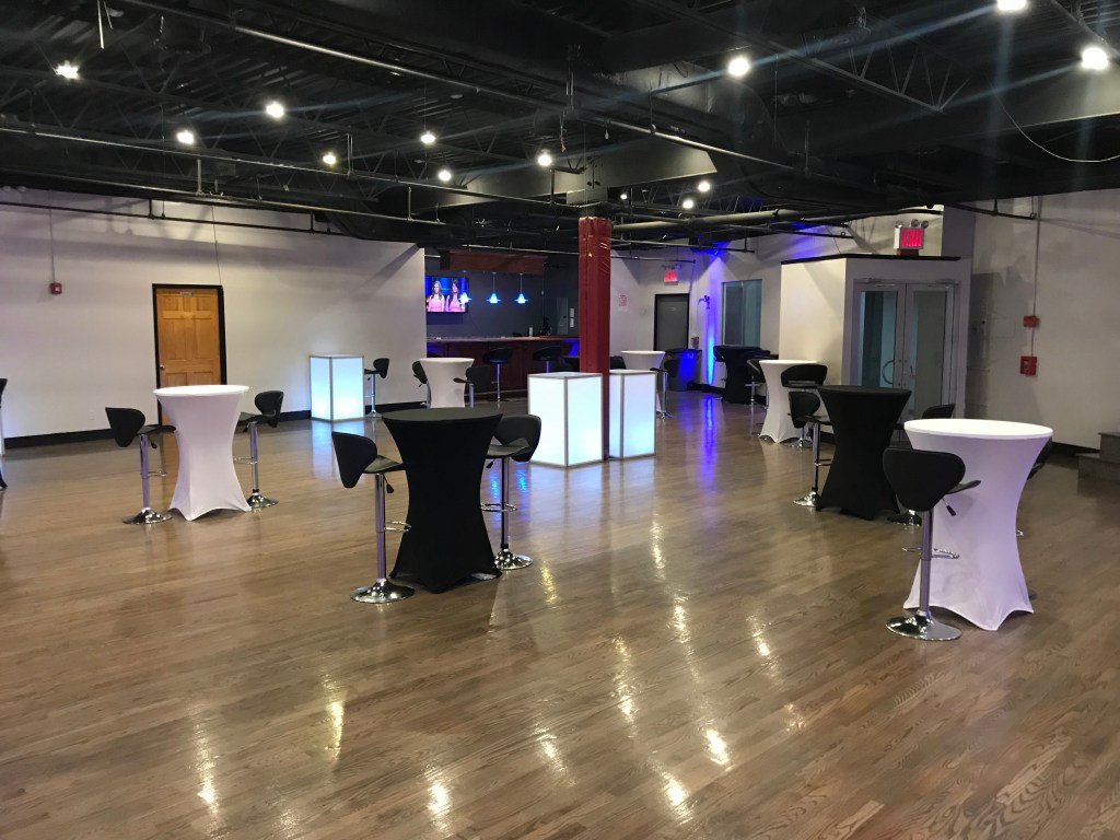 The Executive suite is 3,000 sq. ft. open space, which includes a bar area with seating. The lighting allows clients to customize the look and feel of the venue.